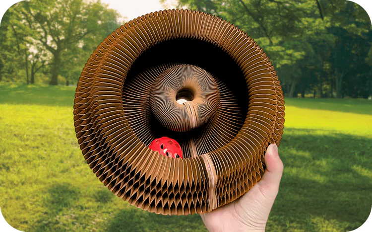 Дизайн, който комбинира драскалка, въртяща се топка, гъвкава форма и удобно място за почивка.